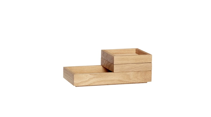 Stable opbevaringsboksen består af tre små bakker, der kan stables. Den store bakke, kan lukkedes ved at placere de to små ovenpå, så du i den store kan gemme vigtige ejendele, mens de to mindre kan bruges til at vise smykker, pyntegenstande eller dine papirclips på skrivebordet.