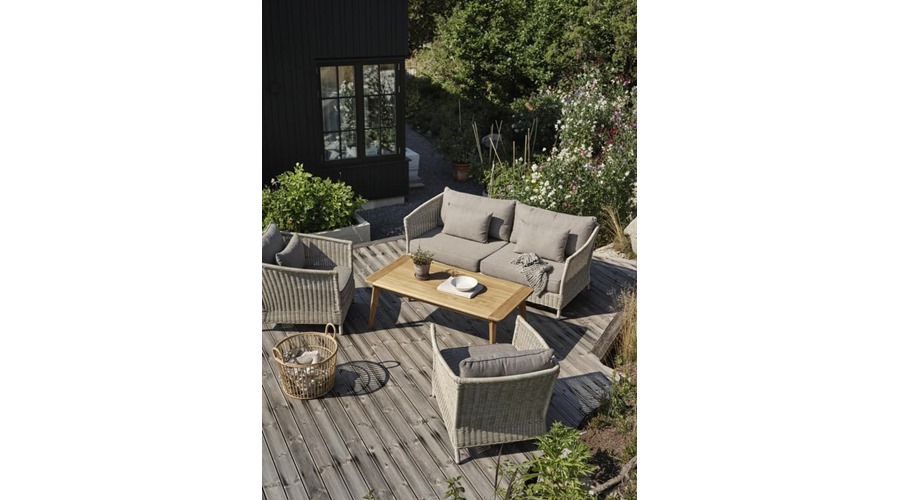 Sædehynderne er betrukket med slidstærkt Olefin-tekstil, som både er vejrbestandigt og behageligt at sidde i – perfekt til lange, afslappende stunder på terrassen. En elegant og holdbar sofa, skabt til udeliv!