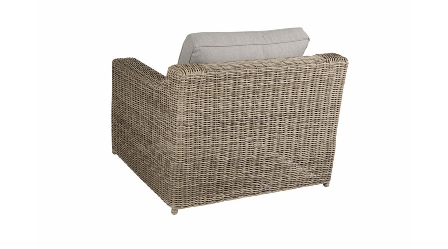 En smuk lænestol, som både står flot i sig selv og sammen med de øvrige møbler i Glendon-serien. Stolen er stabil, rummelig og skøn at sidde i. Den flotte polyrattan passer godt ind alle steder med sin rustikke naturfarve.