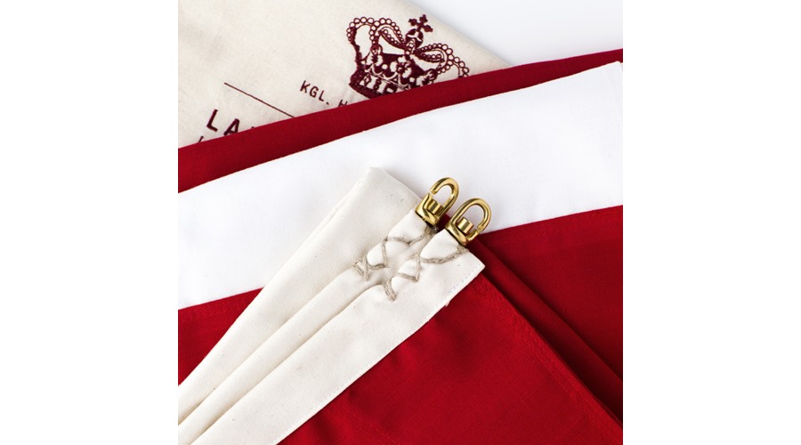 Her er der tale om et virkelig feinschmeckerflag, hvor der er kræset for detaljerne. Luksus Dannebrog er syet med lærredslinning og monteret med messingsvirvel i top og bund.