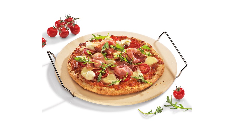 Pizzasten med tilhørende stativ - perfekt til både grill og ovn.