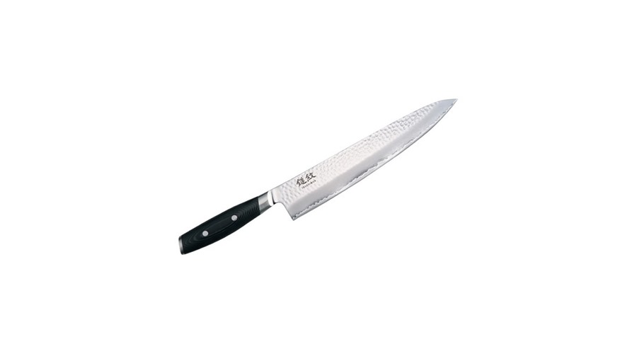 Yaxell Tsuchimon serien kendetegnes ved den særlige smedemetode, hvor knivbladet hammerslåes under fremstillingen, hvilket samtidig gør, at madvarerne nemmere glider af knivbladet.