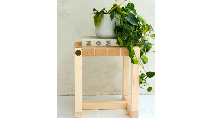 ELLA skammel fremstillet af 100% resttræ samt med håndflettet sæde af OEKO-TEX certificeret hør, som er med til at give et unikt udtryk.