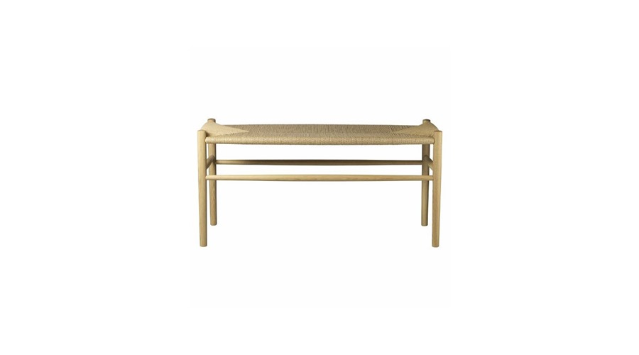 Bænken er i massiv matlakeret eg med et håndflettet sæde. Det benyttede træ er FSC-certificeret og fra europæiske skove.