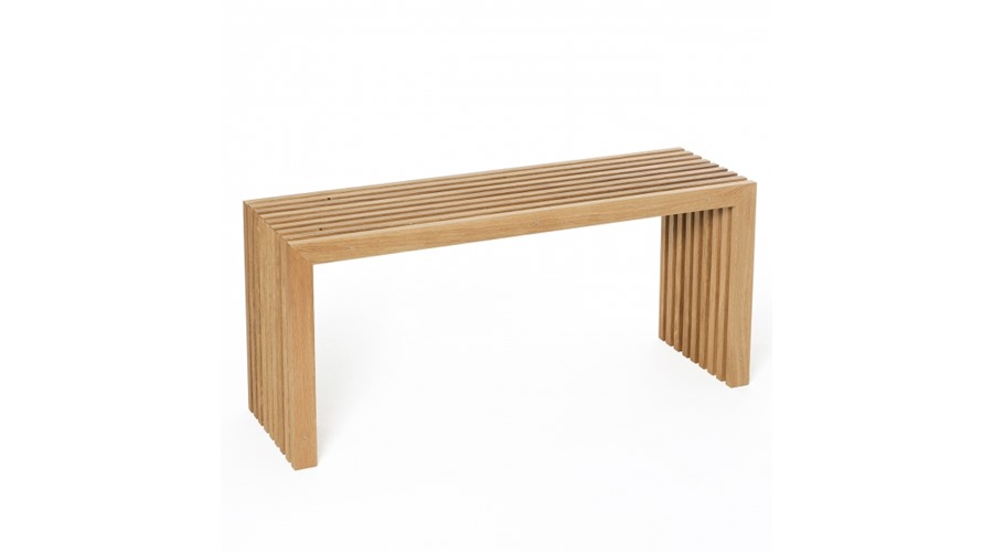 Den enkle bænk i egetræslameller har et på én gang let og robust udseende. Brug bænken i din entre, på badeværelset eller som dekorationsmøbel i din stue.