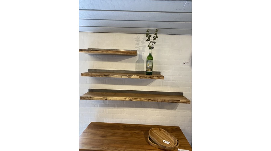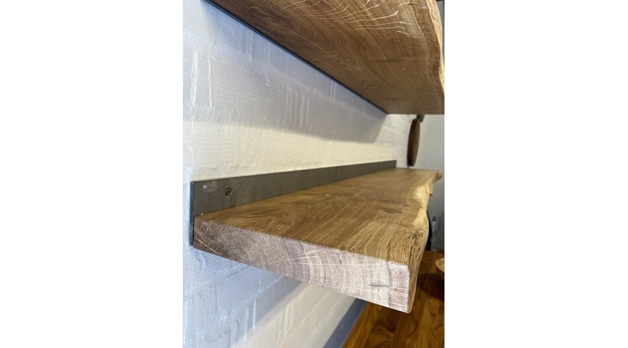 Den rå bomkant giver hver hylde sit eget udtryk og præg, ligesom også træet struktur er forskellig fra hylde til hylde, og vi anbefaler derfor, at hylderne købes i butikken, hvis I ønsker personligt at udvælge jeres hylde.
