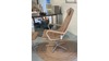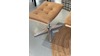 Den er i lys brunt læder, med udbehandlet egetræ og egetræs og stål fod.