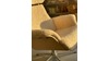 Den er i sandfarvet fåreuld, med ubehandlet egetræ og stål fod.