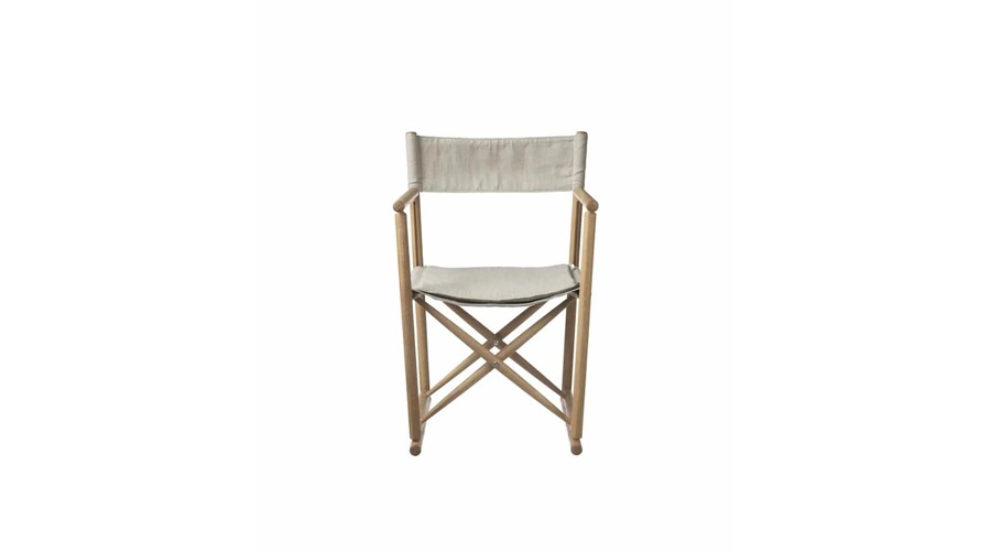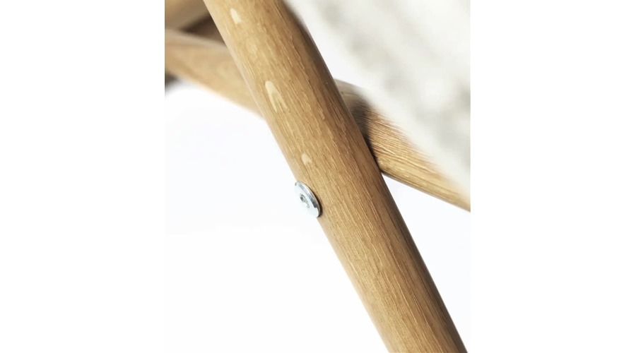Stolen er lavet i olieret eg og lækkert hør stof i lys nuance. Stolen kan foldes sammen, hvilket gør den nem at opbevare.