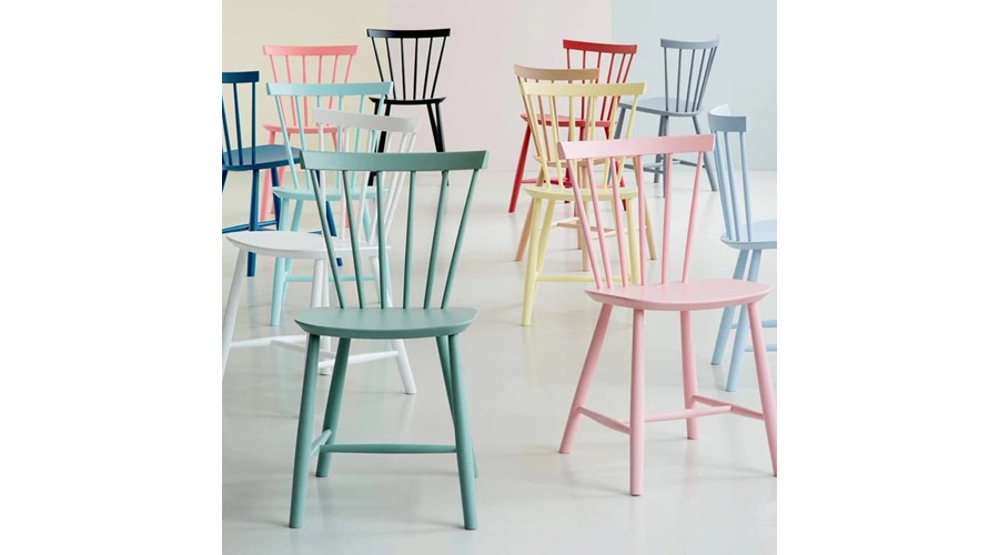 Den ikoniske spisestuestol J46 er designet helt tilbage i 1956. Dengang var den et brud med datidens tunge spisestuestole. Den er særligt genkendelig på den v-formede ryg og fandt hurtigt en plads i tusindvis af danske hjem – ikke mindst fordi, den også er en behagelig og komfortabel stol for både store og små, og samtidig ikke fylder alverden. I 1970’erne blev den relanceret i stærke farver – og den var et helt naturligt førstevalg, da FDB Møbler blev relanceret i 2013. Med 12 forskellige farver finder den stadig en naturlig plads i mange danske spisestuer.