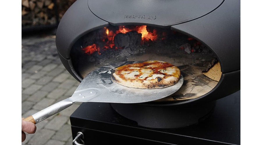Peel pizzaspaden er fremstillet i dråbeformet aluminium og med olieret egetræsskaft, hvilket gør den velegnet til håndtering af pizza i Forno og Grill Forno. Rengøring med varmt sæbevand anbefales.